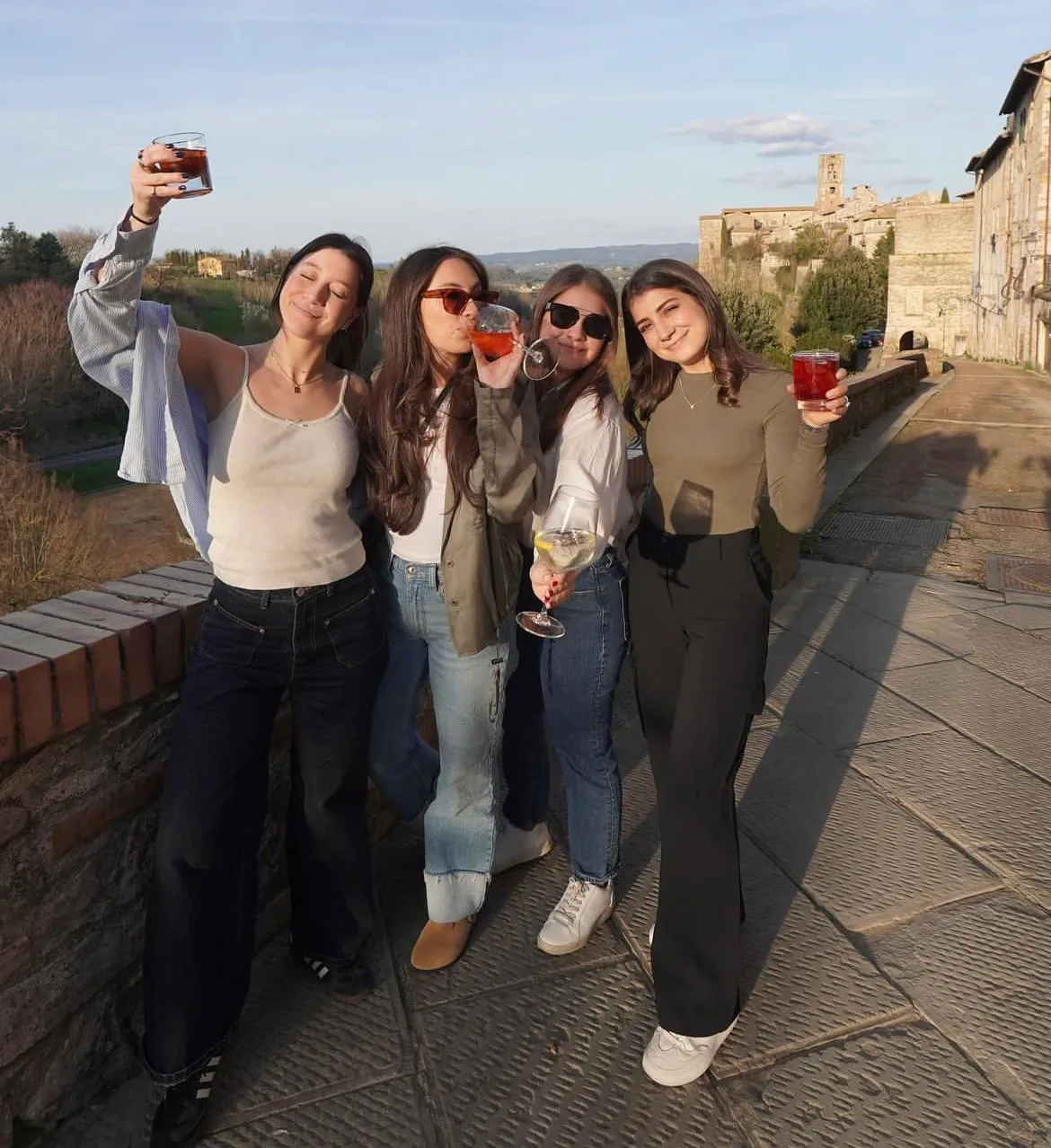 sister snacking drinking wine
