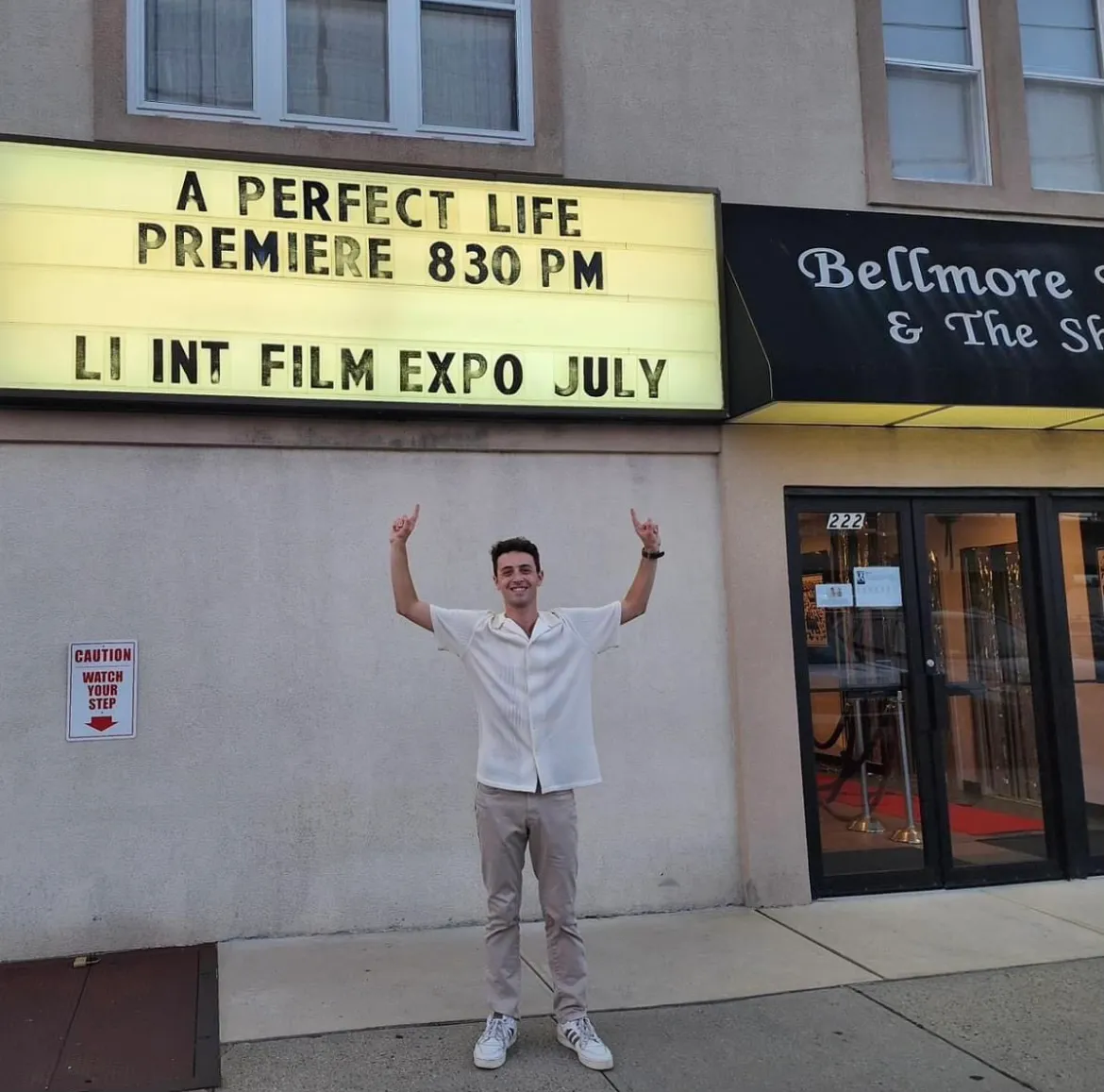 ryan berman standing in front of the theater for his first short film